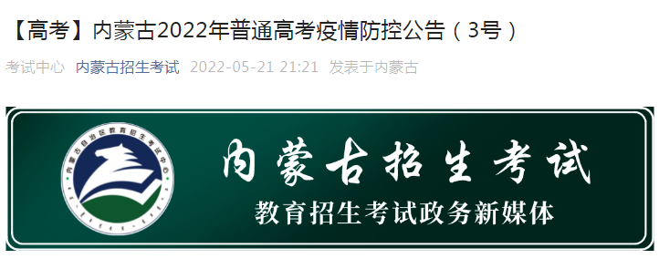 從內(nèi)蒙古自治區(qū)教育招生考試中心了解到,內(nèi)蒙古2022年普通高考疫情防控公告(3號)已發(fā)布,詳細(xì)內(nèi)容如下: