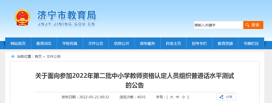 從濟(jì)寧市教育局獲悉,山東濟(jì)寧2022年第二批中小學(xué)教師資格認(rèn)定人員組織普通話水平測試的公告已公布,具體詳情如下: