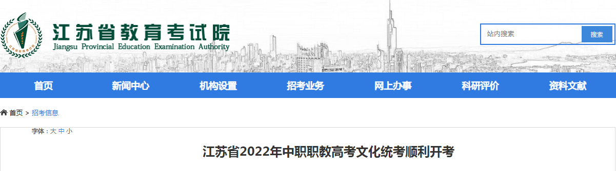 從江蘇省教育考試院了解到,江蘇省2022年中職職教高考文化統(tǒng)考順利開考,詳細內(nèi)容如下: