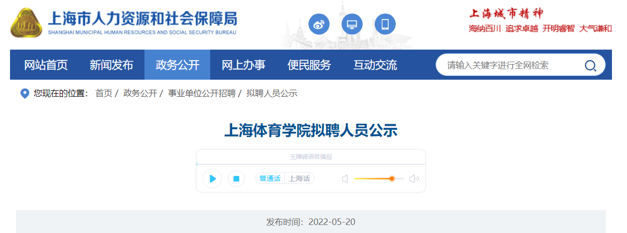 2022上海體育學(xué)院擬聘人員公示已發(fā)布,公示時(shí)間:2022年05月20日—2022年05月27日,現(xiàn)將原文發(fā)布如下: