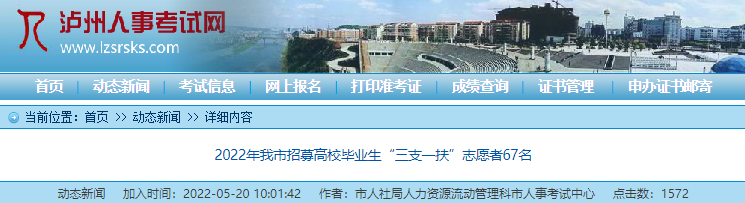 2022年四川瀘州市招募高校畢業(yè)生三支一扶志愿者67名,為了方便廣大考生及時(shí)獲悉相關(guān)資訊,下面為您詳細(xì)介紹一下本次三支一扶招募工作的具體事宜,希望廣大考生及時(shí)關(guān)注,如有相關(guān)疑問(wèn),請(qǐng)關(guān)注為您實(shí)時(shí)做出的更新。