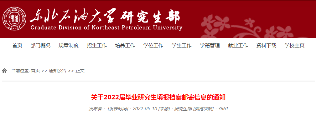 考研頻道從東北石油大學(xué)研究生部了解到,東北石油大學(xué)關(guān)于2022屆畢業(yè)研究生填報(bào)檔案郵寄信息的通知已發(fā)布,詳情如下: