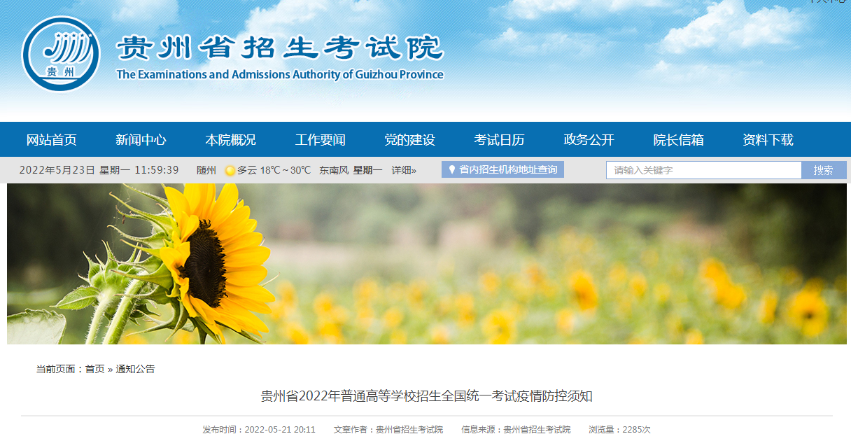 從貴州省招生考試院了解到,貴州省2022年普通高等學(xué)校招生全國統(tǒng)一考試疫情防控須知已發(fā)布,詳細內(nèi)容如下: