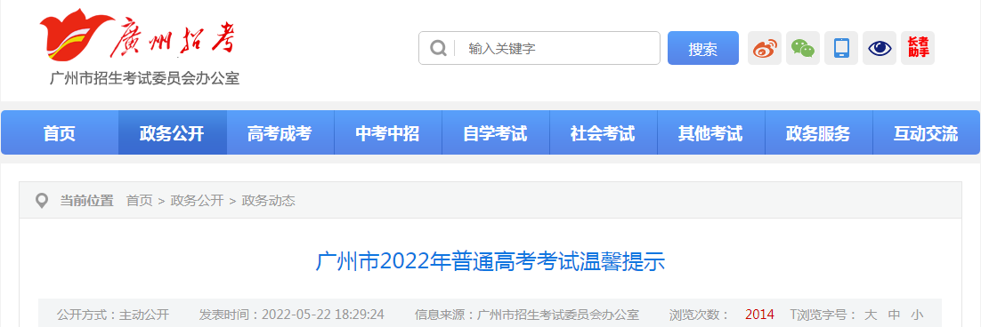 從廣州市招生考試委員會(huì)辦公室了解到,廣東廣州2022年普通高考考試溫馨提示已發(fā)布,詳細(xì)內(nèi)容如下: