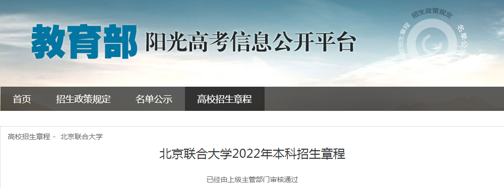 從教育部陽光高考信息公開平臺(tái)獲悉,北京聯(lián)合大學(xué)2022年本科招生章程已公布,具體詳情如下: