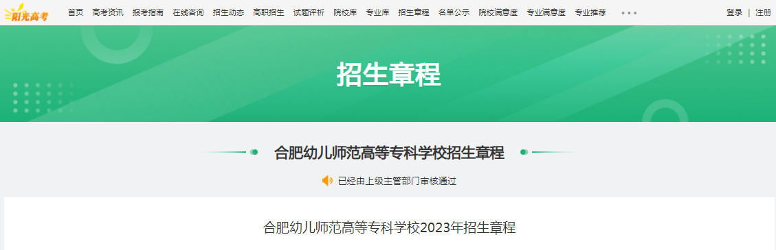 從教育部陽光高考信息公開平臺了解到,合肥幼兒師范高等??茖W校2023年招生章程已公布,詳細內(nèi)容如下: