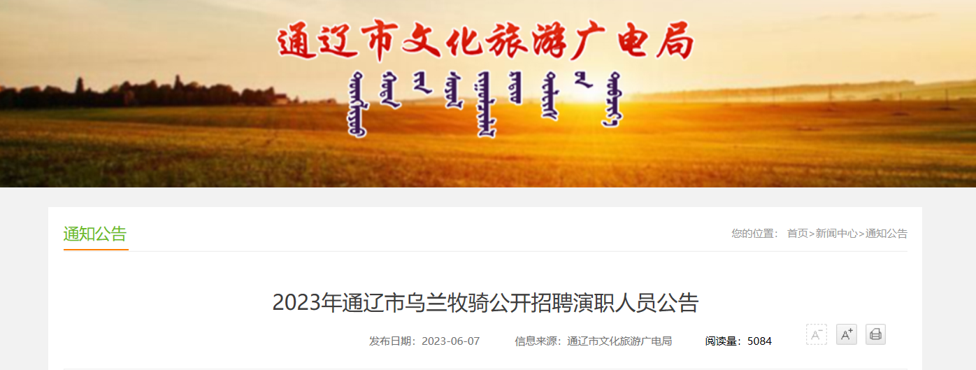 為做好2023年通遼市烏蘭牧騎公開招聘演職人員工作,根據(jù)《通遼市2023年事業(yè)單位公開招聘工作人員總體實(shí)施方案》,制定本公告。
