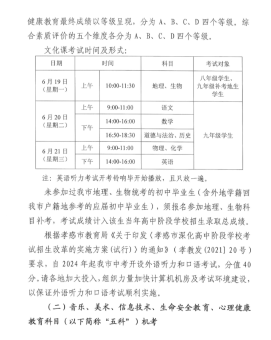 原文標題:孝感市教育局關于印發(fā)《孝感市2023年高中階段學校招生考試實施辦法》的通知