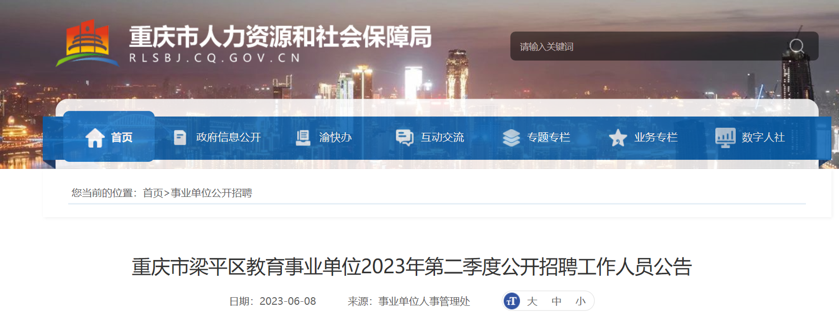 2023年重慶市梁平區(qū)教育事業(yè)單位第二季度招聘25人。報(bào)名時(shí)間2023年6月13日9:00至6月19日17:00?,F(xiàn)將公告原文發(fā)布如下: