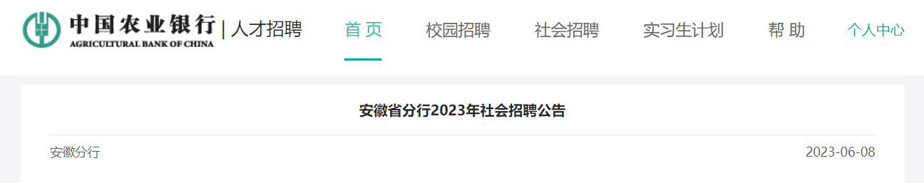 中國(guó)農(nóng)業(yè)銀行安徽省分行面向社會(huì)誠(chéng)聘優(yōu)秀人才,期待與您攜手同行,共創(chuàng)輝煌。