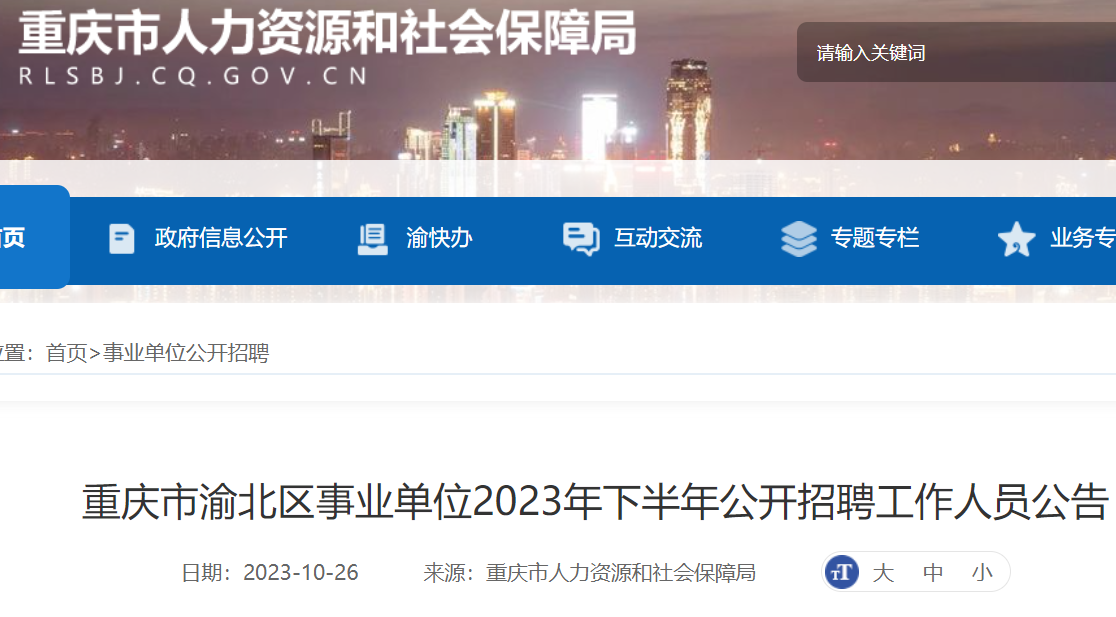 小編根據(jù)重慶市人力資源和社會保障局發(fā)布”重慶市渝北區(qū)事業(yè)單位2023年下半年公開招聘工作人員公告“得知,2023下半年重慶渝北區(qū)事業(yè)單位招聘55人,報名時間為11月2日至11月6日。