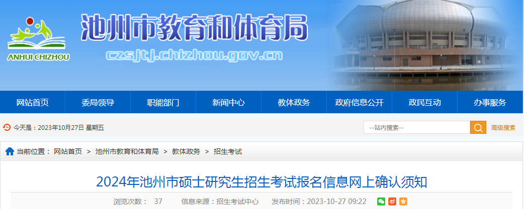 考研頻道從池州市教育和體育局了解到,安徽池州2024年碩士研究生招生考試報名信息網上確認須知已發(fā)布。詳情如下: