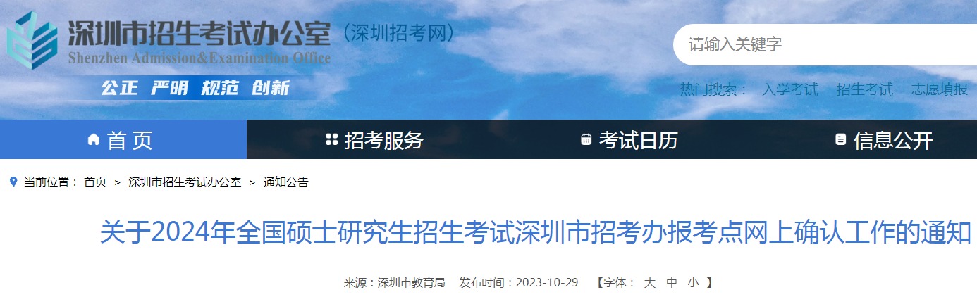 考研頻道從深圳招考網(wǎng)了解到,2024年碩士研究生招生考試廣東深圳網(wǎng)上確認(rèn)工作通知已發(fā)布。詳情如下: