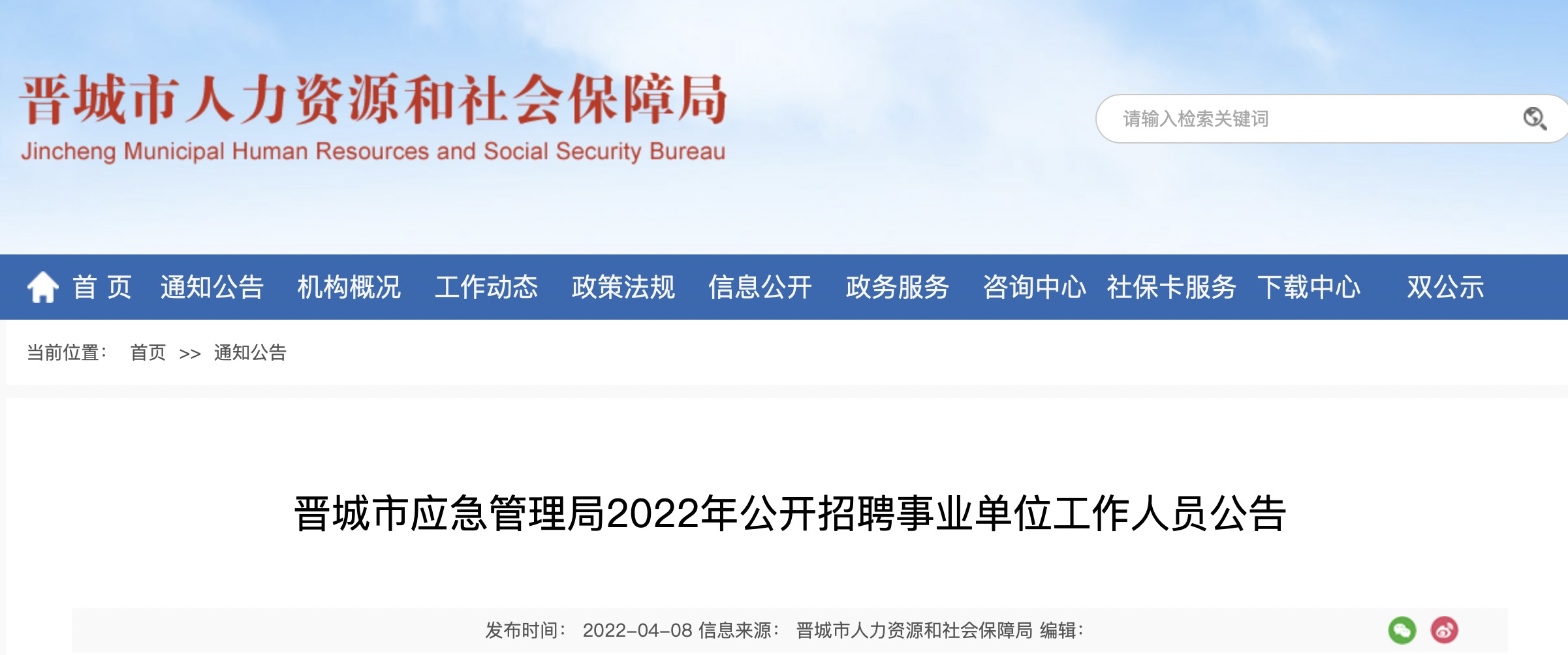 本次招聘公告及相關(guān)信息發(fā)布在晉城市人力資源和社會(huì)保障局(http://rsj.jcgov.gov.cn/)和晉城市應(yīng)急管理局(http://yjj.jcgov.gov.cn/)。