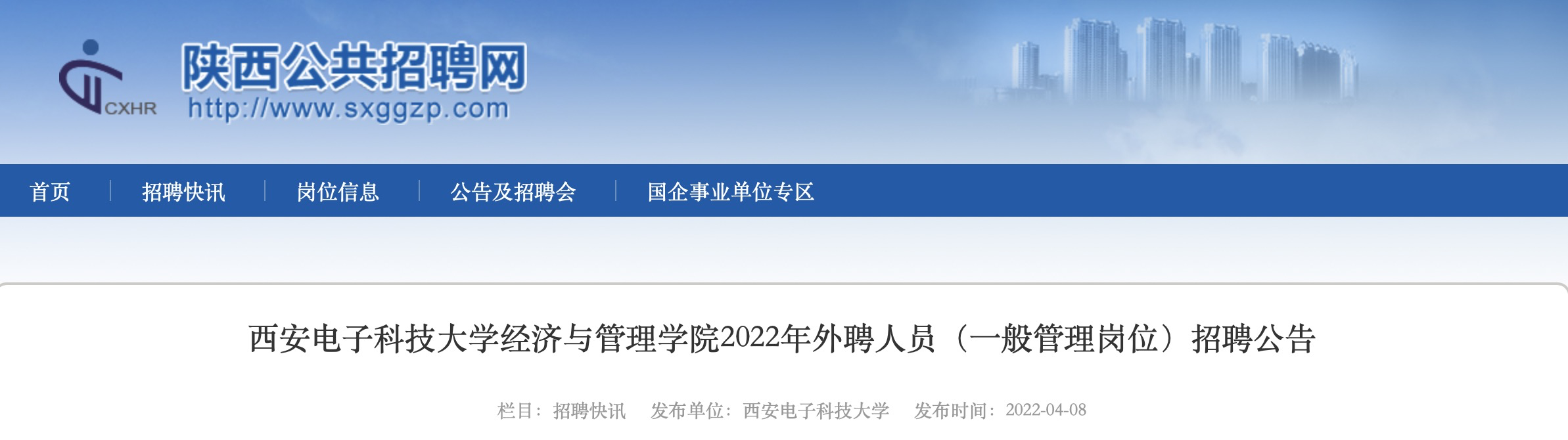2022年陜西西安電子科技大學(xué)經(jīng)濟(jì)與管理學(xué)院外聘人員招聘公告【2人】已發(fā)布,現(xiàn)將招聘公告原文發(fā)布如下:
