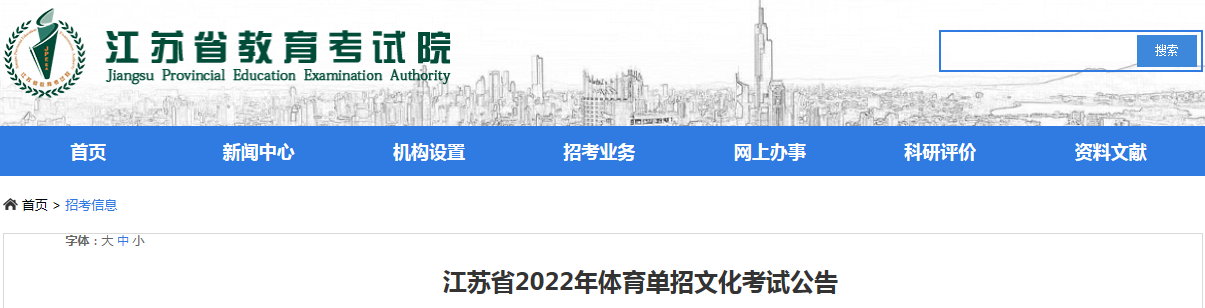 體育高考頻道從江蘇省教育考試院了解到,江蘇省2022年體育單招文化考試公告已發(fā)布,詳情如下: