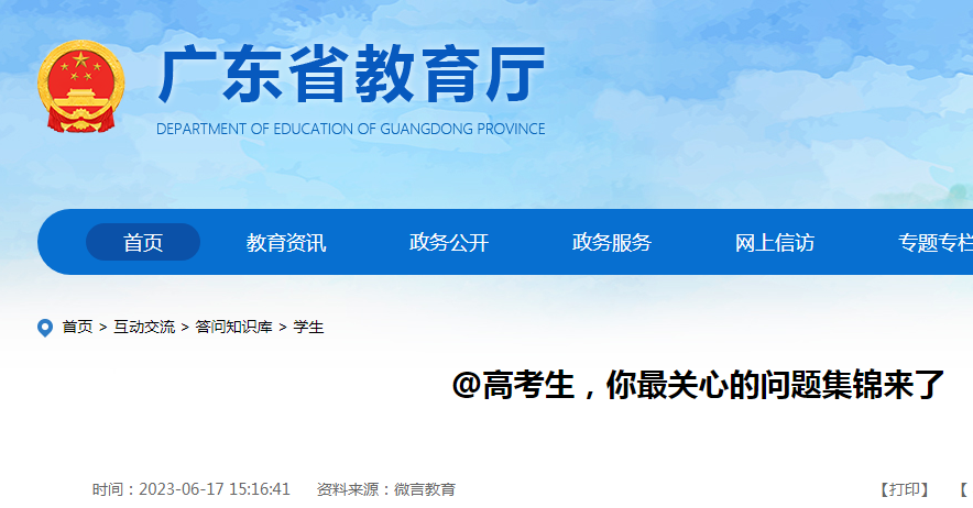 高考頻道從廣東省教育廳了解到,2023年廣東高考生關(guān)心的問題集錦已發(fā)布。詳情如下: