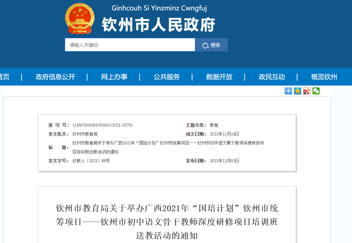 2021廣西國培計劃欽州市初中語文骨干教師深度研修項目培訓班送教活動通知已發(fā)布。為您整理了以下內容,供您參考。