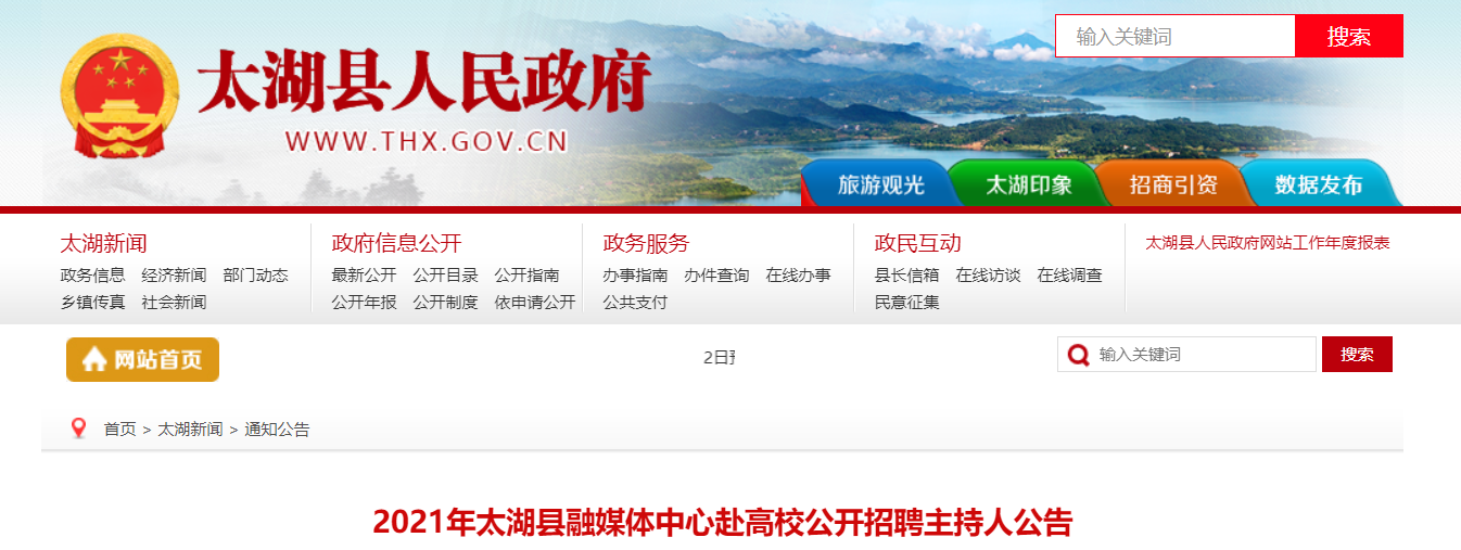 2021年太湖縣融媒體中心計劃面向2022年應(yīng)屆高校畢業(yè)生公開招聘主持人2名(男女各一名)。招聘相關(guān)信息于12月3日起同時在太湖縣人民政府網(wǎng)(http://www.thx.gov.cn/)、太湖縣人事考試培訓(xùn)網(wǎng)(http://aqthzyjs.ahkjwx.com/)及相關(guān)媒體上統(tǒng)一發(fā)布。