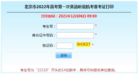 2022年北京豐臺高考第一次英語聽說機考準考證打印時間為2021年12月6日至11日,考生通過北京教育考試院網(wǎng)站(https://www.bjeea.cn/)北京市2022年高考第一次英語聽說機考準考證打印系統(tǒng)(http://gkyytszkz.bjeea.cn/aeersexam/)自行打印準考證