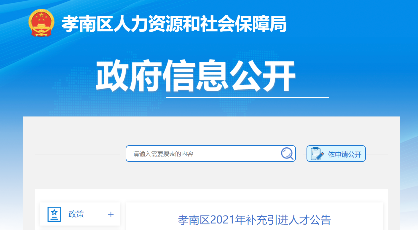 2021湖北省孝感市孝南區(qū)補(bǔ)充引進(jìn)人才公告已發(fā)布。報(bào)名時(shí)間:2021年12月5日至7日,報(bào)名截止日期12月7日17:00。為您整理了招聘條件和報(bào)名流程,供您參考。
