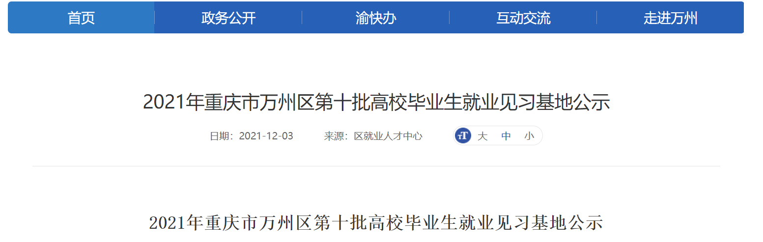 點(diǎn)擊查看附件:2021年重慶市萬州區(qū)第十批高校畢業(yè)生就業(yè)見習(xí)基地公示表