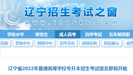 專升本考試頻道從遼寧招生考試之窗了解到,遼寧省2022年普通高等學校專升本招生考試報名即將開始,具體如下: