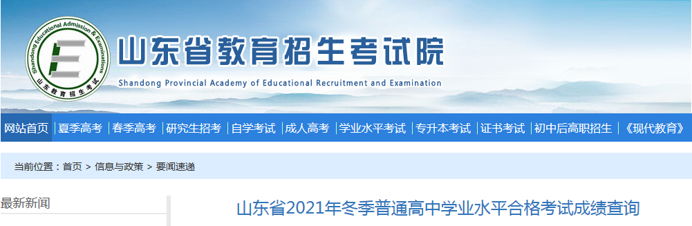 山東省2021年冬季普通高中學(xué)業(yè)水平合格考試成績(jī)查詢(xún)?nèi)肟?點(diǎn)擊進(jìn)入