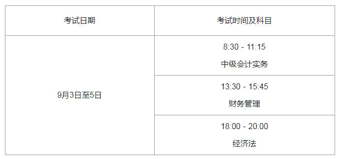 中級(jí)考試于2022年9月3日至5日舉行,共3個(gè)批次。
