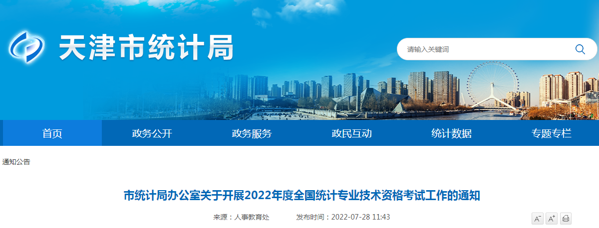 2022年天津統(tǒng)計師報名入口 點擊進入
