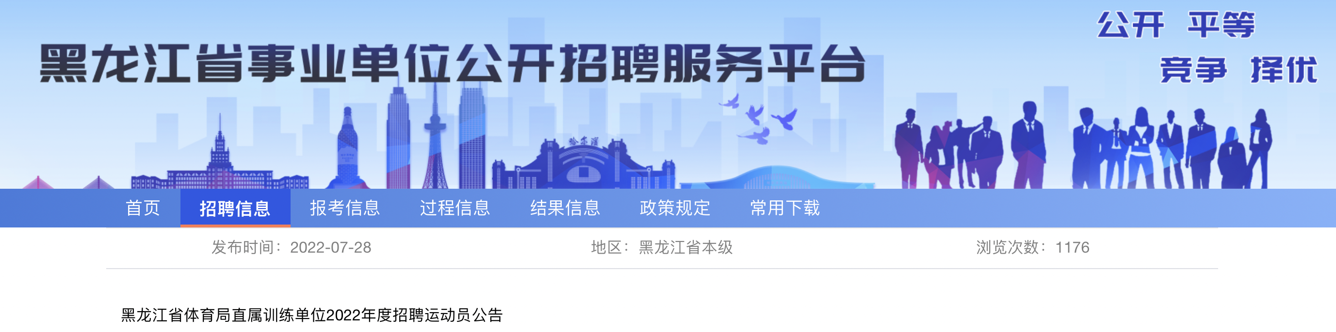 通過黑龍江省人力資源和社會保障廳事業(yè)單位公開招聘服務(wù)平臺(http://hrss.hlj.gov.cn/hrss/zt1/entry.ks)和省體育局官方網(wǎng)站(http://tyj.hlj.gov.cn/)面向社會公開發(fā)布招聘信息。