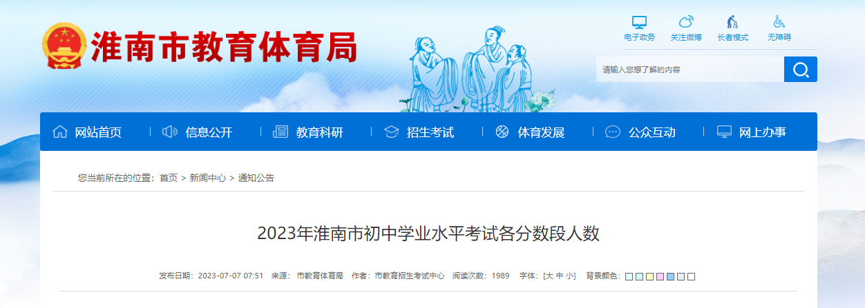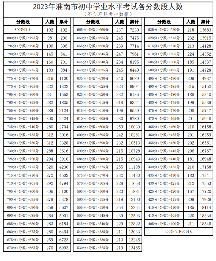 從淮南市教育體育局獲悉,2023年安徽淮南中考成績各分數(shù)段人數(shù)已公布,具體詳情如下:
