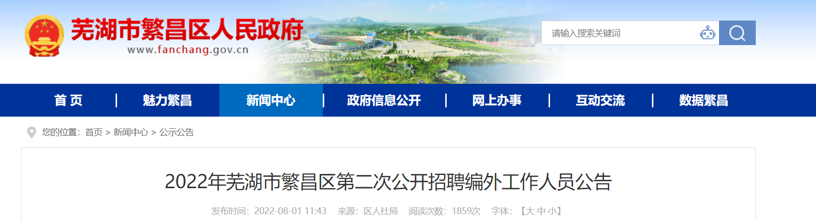 2022安徽省蕪湖市繁昌區(qū)第二次招聘編外人員公告已發(fā)布。報名時間:2022年8月8日—8月10日(截止時間:8月10日17:30),逾期不再補報?,F(xiàn)將招聘公告原文發(fā)布如下: