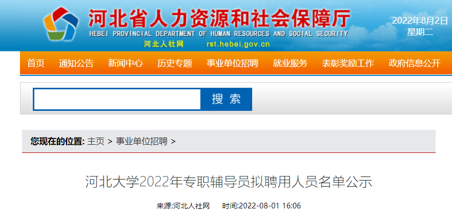2022年河北大學(xué)專職輔導(dǎo)員擬聘用人員名單公示已發(fā)布,公示期自即日起7個工作日,現(xiàn)將原文發(fā)布如下: