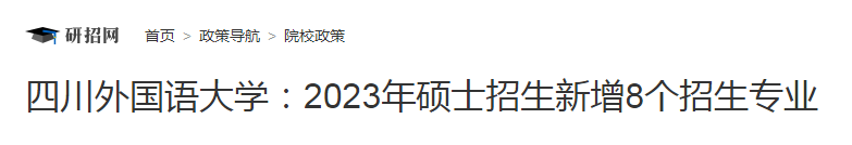 考研頻道從中國研究生招生信息網(wǎng)了解到,四川外國語大學(xué)2023年碩士招生新增8個(gè)招生專業(yè),詳情如下: