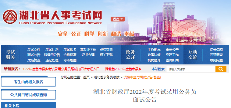 2022年湖北省財政廳考試錄用公務(wù)員面試公告已公布,為了方便廣大考生的查閱,下面為您詳細(xì)介紹一下本次公務(wù)員面試的具體事宜,希望廣大考生及時關(guān)注,如有相關(guān)疑問,請關(guān)注公務(wù)員頻道為您實時做出的更新。