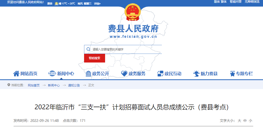 原文標題:2022年臨沂市“三支一扶”計劃招募面試人員總成績公示(費縣考點)