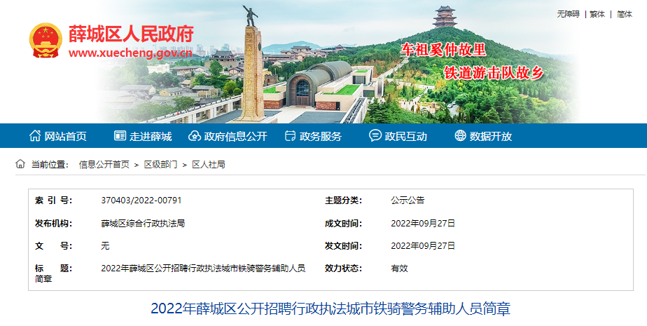 原文標題:2022年薛城區(qū)公開招聘行政執(zhí)法城市鐵騎警務輔助人員簡章