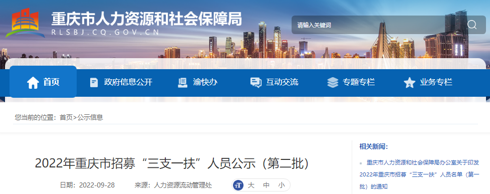 2022年重慶市招募三支一扶人員公示(第二批)已公布,為了方便廣大考生的查閱,下面為您詳細介紹一下本次招募三支一扶人員公示的具體事宜,希望廣大考生及時關(guān)注,如有相關(guān)疑問,請關(guān)注為您實時做出的更新。