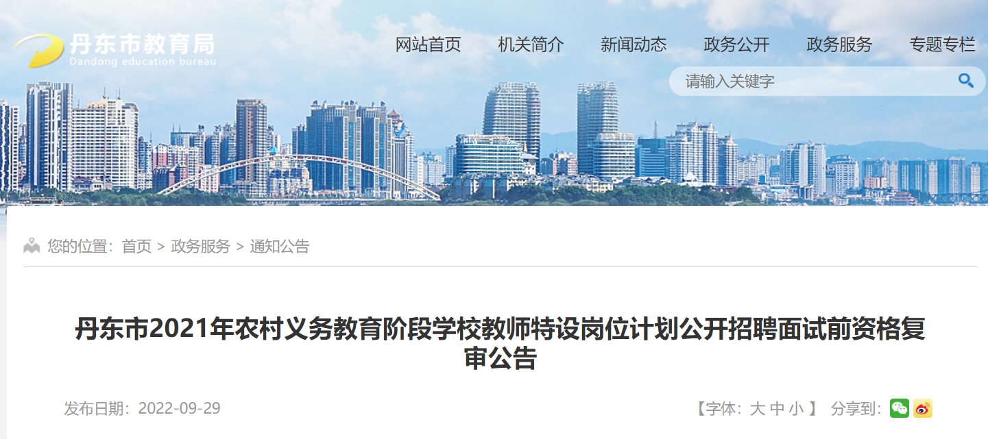 原文標(biāo)題:丹東市2021年農(nóng)村義務(wù)教育階段學(xué)校教師特設(shè)崗位計(jì)劃公開(kāi)招聘面試前資格復(fù)審公告