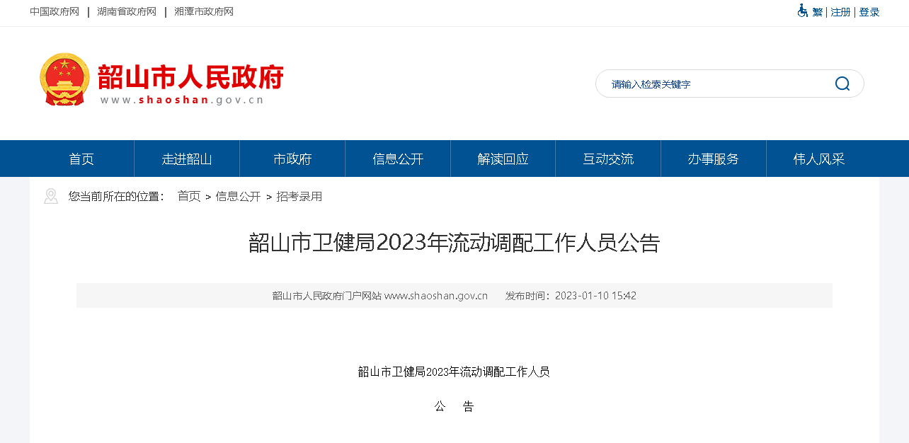 原文標題:韶山市衛(wèi)健局2023年流動調配工作人員公告