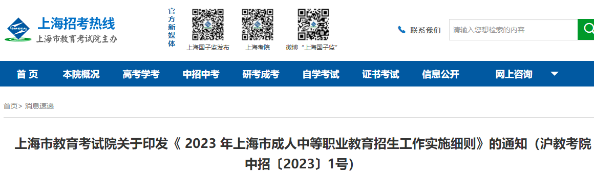 成人高考頻道從上海市教育考試院了解到,2023年上海市成人中等職業(yè)教育招生工作實(shí)施細(xì)則已公布,具體如下: