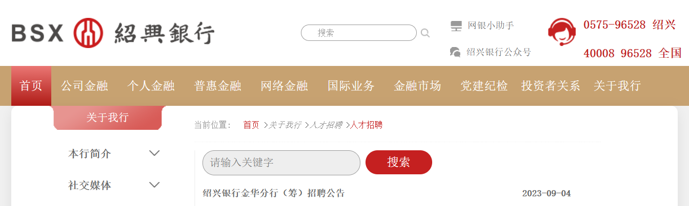 2023年紹興銀行浙江金華分行招聘10人,報名時間:2023年9月8日17:00截止,現將招聘公告發(fā)布如下: