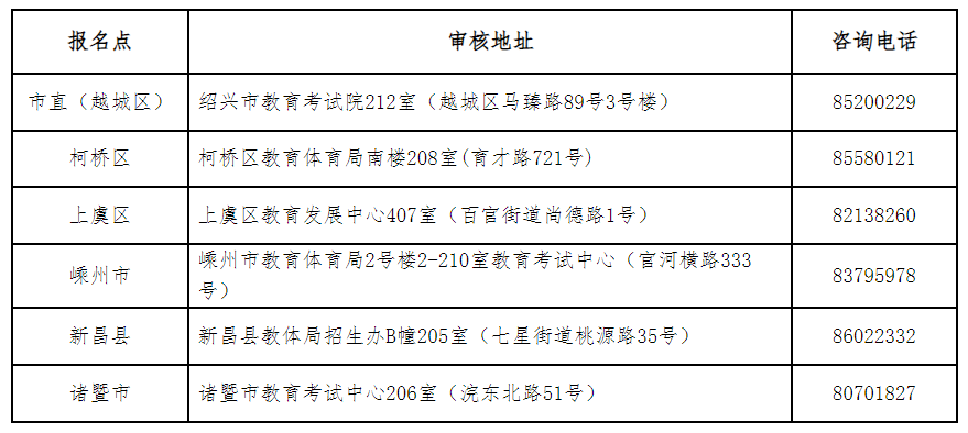 附件:紹興各報(bào)名審核點(diǎn)的具體地址、咨詢電話
