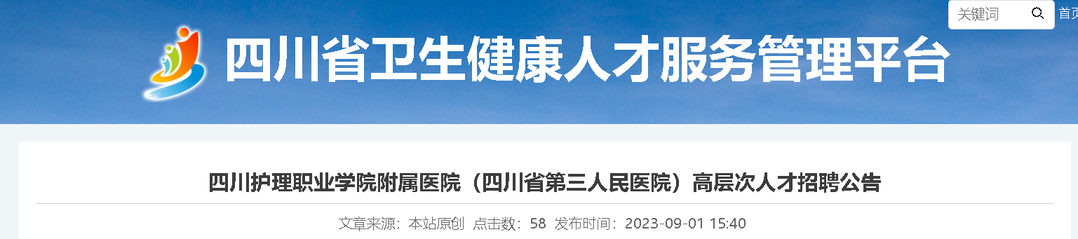 2023四川護(hù)理職業(yè)學(xué)院附屬醫(yī)院(四川省第三人民醫(yī)院)高層次人才招聘,報(bào)名時(shí)間:即日起開始報(bào)名,擇優(yōu)錄取,額滿為止,現(xiàn)將招聘公告原文發(fā)布如下: