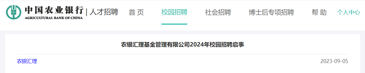 2024年農(nóng)業(yè)銀行上海農(nóng)銀匯理基金管理有限公司校園招聘3人,報名時間:即日起至2023年9月26日,現(xiàn)將招聘公告發(fā)布如下:
