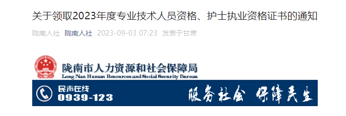 從隴南人社公眾號(hào)獲悉,2023年甘肅隴南護(hù)士執(zhí)業(yè)資格證書領(lǐng)取通知已公布,請(qǐng)相關(guān)人員仔細(xì)閱讀,具體詳情如下: