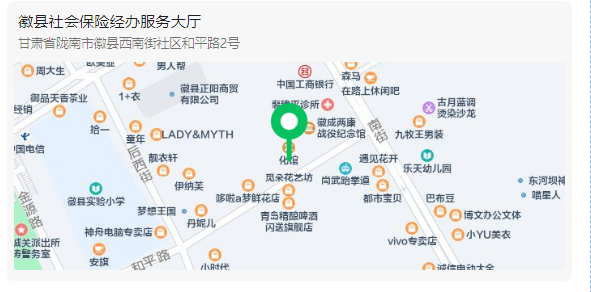 徽縣:甘肅省隴南市徽縣城關(guān)鎮(zhèn)社保經(jīng)辦大廳(文化館隔壁)