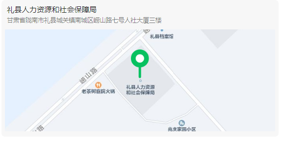 禮縣:禮縣人力資源和社會(huì)保障局(禮縣南城區(qū)嶗山路7號(hào))311室