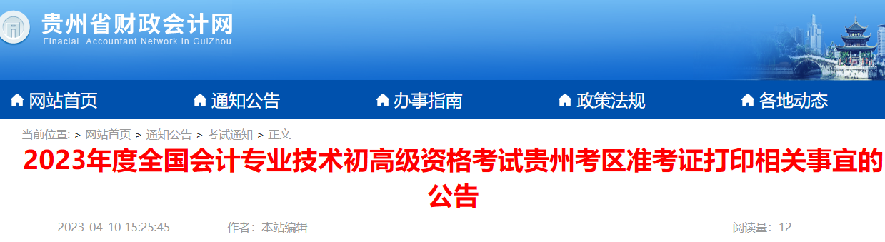 現(xiàn)將貴州考區(qū)2023年度全國會計專業(yè)技術(shù)資格初、高級準考證打印日期等有關(guān)事項公告如下: